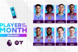 直播吧2月5日讯 英超官方公布了1月份最佳球员候选,具体如下: