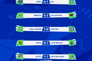 青年欧冠1/8决赛:皇马1-0淘汰切尔西 本菲卡6-2淘汰阿尔克马尔