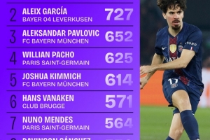 直播吧2月26日讯 Squawka统计了本赛季球员在欧冠比赛中的成功传球次数,并列出榜单,维蒂尼亚1028次成功传球断层领跑。