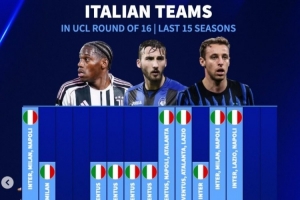 直播吧2月26日讯 本轮欧冠附加赛,尤文加时憾负、国米被双杀出局,亚特兰大大逆转晋级。《转会市场》也统计了近年欧冠16强的意甲球队数量: