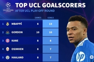 直播吧2月26日讯 欧冠淘汰赛附加赛已经完赛,《转会市场》也统计了本赛季欧冠射手榜,姆巴佩居首。