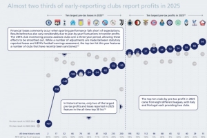此外,进入盈利榜前十的还有波尔图4400万欧元,拜仁4300万欧元,本菲卡3700万欧元,费耶诺德3100万欧元,以及布鲁日2600万欧元。