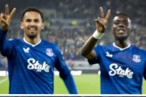 直播吧03月22日讯 本轮英超,埃弗顿3-0切尔西,比赛尾声恩迪亚耶兜射死角破门为球队锁定胜局,他与同是塞内加尔国脚的盖耶向镜头做出了“2”的庆祝动作,意指此前被改判给摩洛哥的,塞内加尔队史第二座非洲杯冠军。