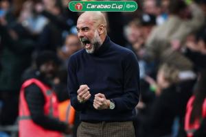 直播吧03月23日讯 联赛杯决赛今日在温布利球场落幕,曼城2-0力克阿森纳成功夺冠,主帅瓜迪奥拉凭借此次胜利,成为足球历史上首位斩获5座联赛杯冠军的主教练,刷新赛事纪录。