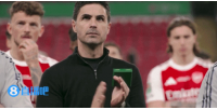 阿尔特塔赛后率领枪手众将在场地内观看颁奖仪式,塔帅鼓掌致意