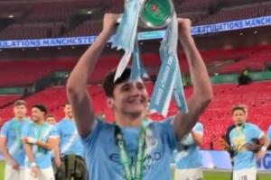 积累经验!胡桑诺夫夺曼城生涯首冠,哈兰德、多纳鲁马指导他互动