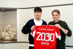 直播吧03月23日讯 拜仁官方消息,俱乐部与19岁葡萄牙U19国脚中场大卫·桑托斯-戴伯尔签订一份到2030年的合同。