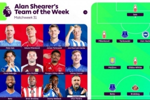 直播吧3月23日讯 英超第31轮战罢,阿兰·希勒评选了本轮最佳阵容,贝托、吉布斯-怀特、维尔贝克在列。