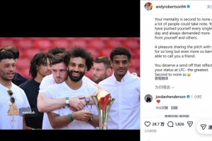 直播吧3月25日讯 萨拉赫官宣赛季结束后离队,他的利物浦队友罗伯逊通过社交媒体送上告别。