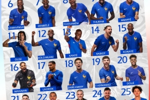 直播吧3月25日讯 法国队公布了本期国家队球员号码,图拉姆9号、姆巴佩10号、登贝莱7号。
