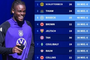 直播吧3月25日讯 德国转会市场盘点了德国后卫身价,施洛特贝克排名第一,而没有入选德国本期名单的比塞克排在第三。
