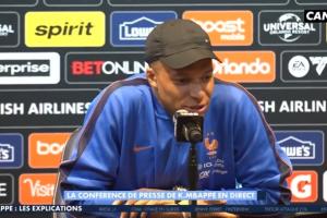 直播吧03月26日讯 在法国友谊赛对阵巴西前夕,姆巴佩出席了赛前新闻发布会,并在采访时谈到了自己的膝盖伤势,并澄清了近期有关“皇马误诊其膝盖”的传闻。