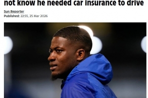 直播吧3月26日讯 《太阳报》报道,前切尔西球星无证驾驶再遭禁驾,被法官斥责“该长大了”。