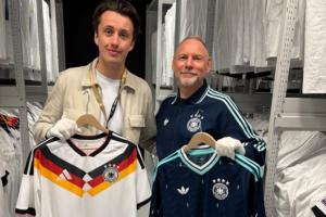 直播吧03月26日讯 德国队公布了2026世界杯的主客场球衣,这也是德国队与阿迪达斯的最后一次合作,明年他们即将转投耐克,阿迪达斯的首席设计师接受了《图片报》的采访,谈到了为何德国队的客场球衣是蓝色的。