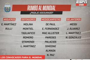 直播吧03月26日讯 据ESPN阿根廷版报道,阿根廷世界杯名单中已有20名球员锁定席位,剩余的6个名额将由16名球员争夺。