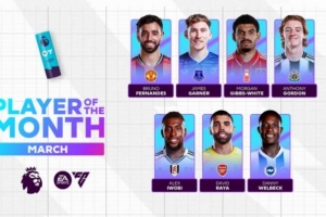 直播吧3月26日讯 今日,英超联赛官方公布了3月最佳球员候选,B费、拉亚、维尔贝克、安东尼·戈登等7将入选。