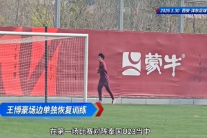 直播吧3月30日讯 西安足球邀请赛第三轮,U23国足明晚对阵越南队,据博主“北坡看球”报道,U23国足球员王博豪单独恢复,彭啸、向余望、鲍世蒙未合练。
