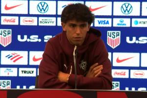 直播吧03月31日讯 北京时间4月1日07:00,友谊赛葡萄牙将对阵美国。赛前葡萄牙球星菲利克斯出席赛前发布会。