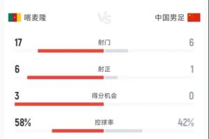 直播吧03月31日讯 FIFA系列赛第2轮,国足0-2负于喀麦隆。全场数据如图。