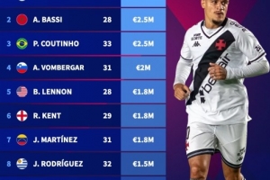 直播吧4月9日讯 在对球员身价进行新一期更新后,德国转会市场盘点了自由球员身价top10,库蒂尼奥250万欧第3,阿里身价仅剩100万欧跻身前10。