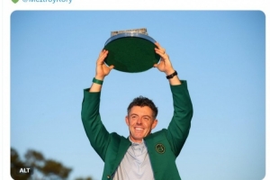 直播吧4月13日讯 曼联球迷麦克罗伊卫冕美国高尔夫大师赛冠军,曼联官方社媒对他表示祝贺。