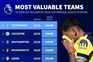 热刺与降级球队身价排名: