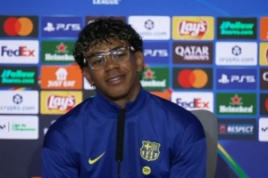 直播吧4月13日讯 北京时间4月15日3:00,巴萨将在欧冠1/4决赛次回合客场挑战马竞,首回合巴萨0-2落败。赛前,巴萨前锋亚马尔出席新闻发布会。