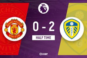 直播吧4月14日讯 英超第32轮,曼联坐镇主场老特拉福德球场迎战利兹联。上半场,拉门斯神扑,奥卡福双响。半场战罢,曼联0-2利兹联。
