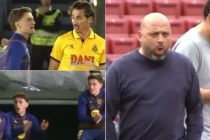 直播吧4月14日讯 西甲第31轮,巴萨主场4-1战胜西班牙人。据《马卡报》报道,巴萨中场加维与西班牙人球员发生了冲突,并邀请对方到场外解决。