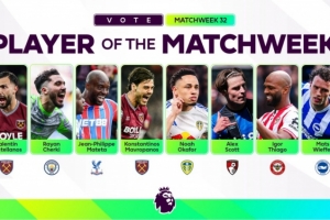 直播吧4月14日讯 英超第32轮战罢,英超官方也评选出本轮比赛最佳球员候选名单,具体如下: