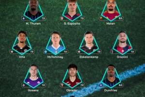 直播吧4月14日讯 意甲第32轮已经结束了全部的争夺,联赛官方评选出了本轮最佳阵,马库斯·图拉姆、邓弗里斯领衔,马伦、麦克托米奈在列。