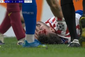 直播吧04月15日讯 欧冠1/4决赛次回合,马竞vs巴萨,第69分钟,鲁杰里被加维肘击,倒地满脸是血,加维染黄!