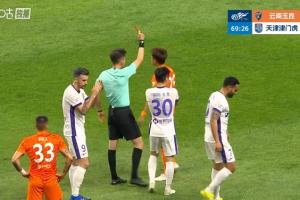 直播吧04月17日讯 中超第6轮,云南玉昆vs天津津门虎,比赛第70分钟,张宸梁身后拉倒谢蒂内,两黄变一红被罚下,玉昆0-2+少一人作战!VAR介入检查是否构成直红,最后维持黄牌判罚。