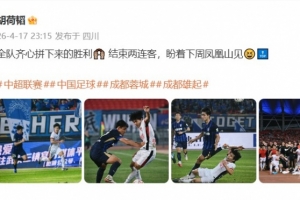 直播吧4月17日讯 中超联赛第6轮,成都蓉城客场1-0击败武汉三镇,继续领跑积分榜。