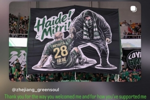直播吧4月18日讯 中超第6轮,浙江队主场0-0战平北京国安,本场比赛前浙江队球迷打出TIFO,声援被停赛的外援米特里策。