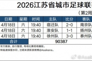 2026江苏省城市足球联赛现场观众人数统计:今日场均超3万人