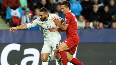[劲射被扑] 皇马中场风骚挑传送过顶 卡瓦哈尔前插劲射被扑